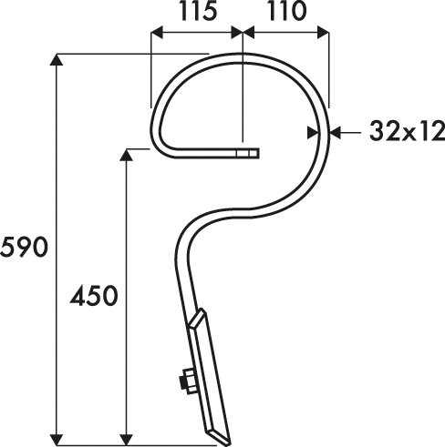 Dent Vibroculteur droite 32*12 A/soc SOLBERG - Sous bâti 440 / Totale 585