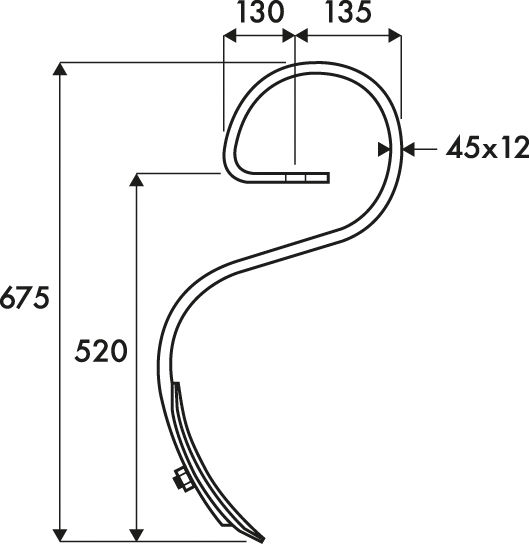 Dent Vibroculteur 45*12 avec soc ADAPTABLE - Sous bâti 520 / Totale 685