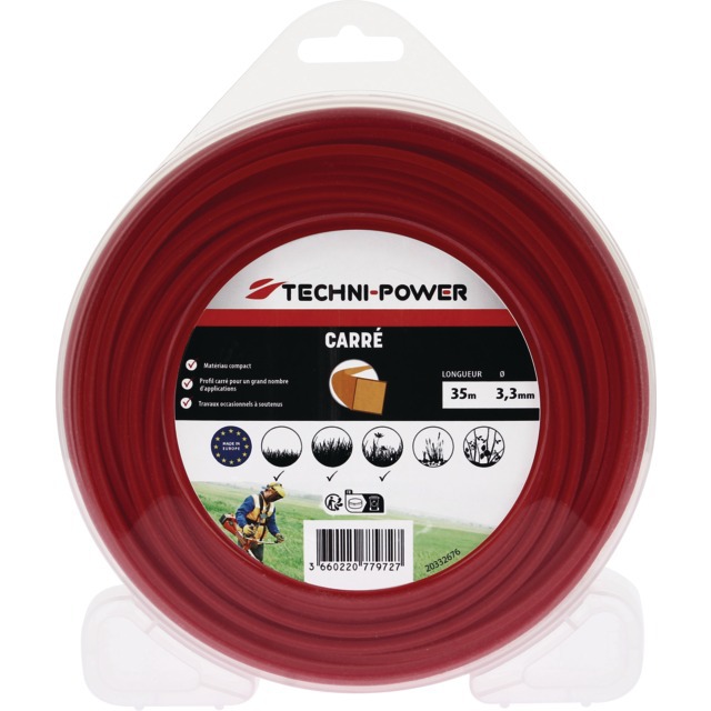 FIL DE DEBROUSSAILLEUSE CARRE Ø 3,3 MM COQUE DÉVIDOIR 35M TECHNI-POWER